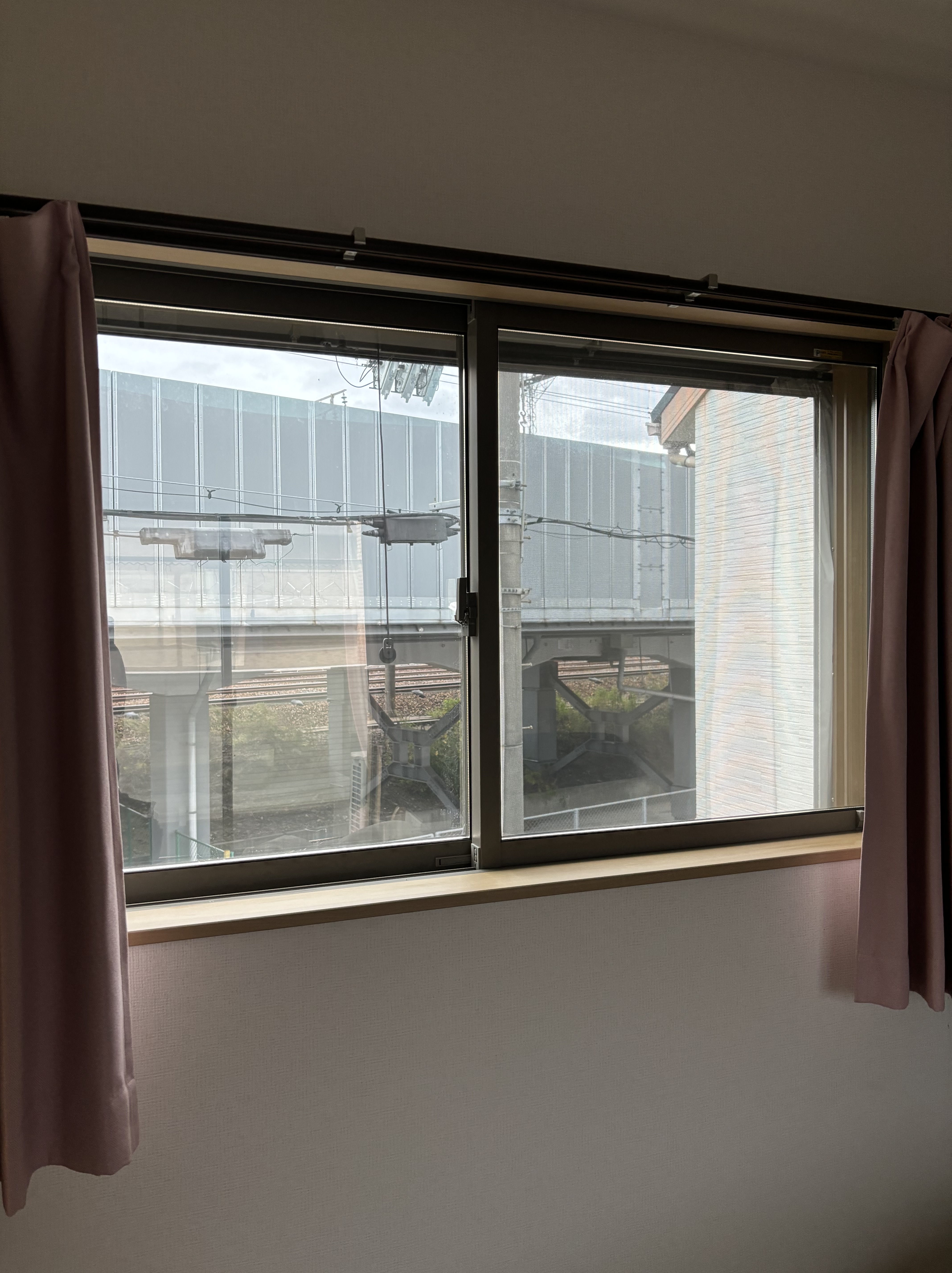 家の中から通行者と目が合うのをなんとかしたいとのご相談でした。ミラーフィルムをご提案させていただき、施工させていただきました。窓にセコムの防犯セキュリティが各ガラスに付いていましたので、その箇所は切り欠きして納めました。施工後、外から見たミラー感に感動されていました。ありがとうございます。