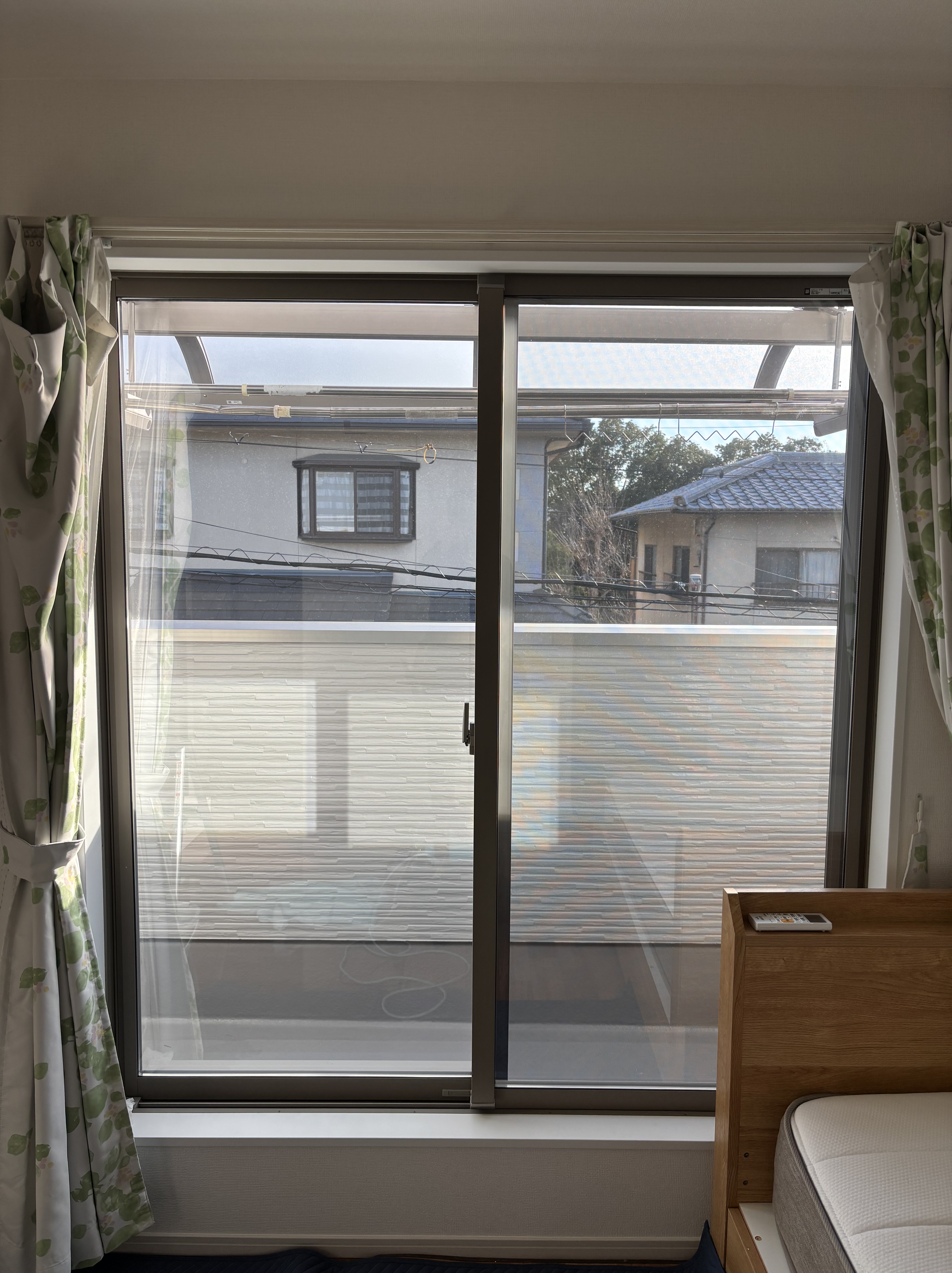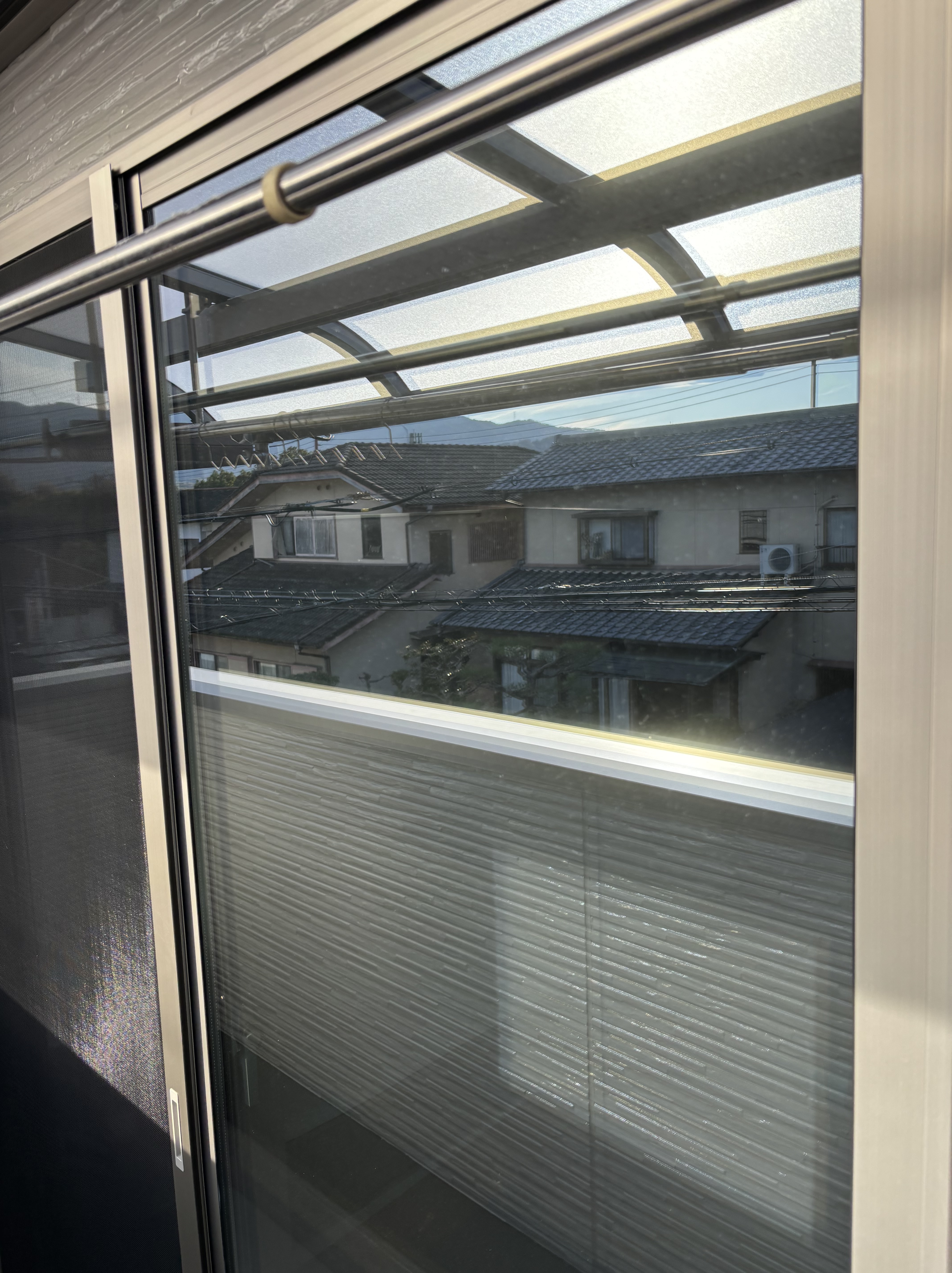 以前、防犯フィルム施工をさせていただきましたお客様の娘様ご夫婦のご新居に、防犯フィルムを貼ってあげてほしいとのご依頼をいただきました。1階の全ての窓は防犯フィルム、2階全ての窓をミラーフィルムを貼らせていただきました。30枚程の施工でしたので、施工は夕方前まで行いました。