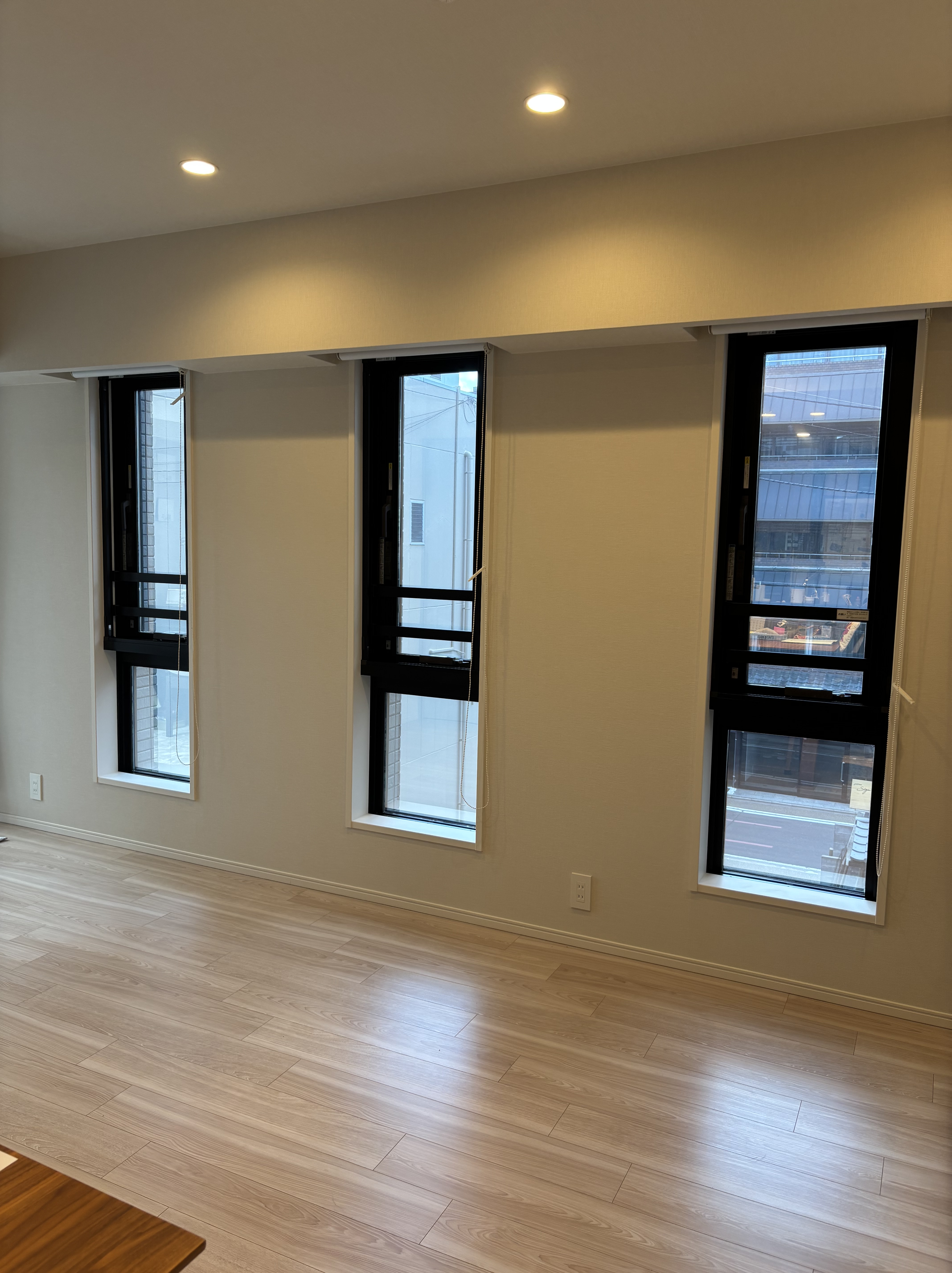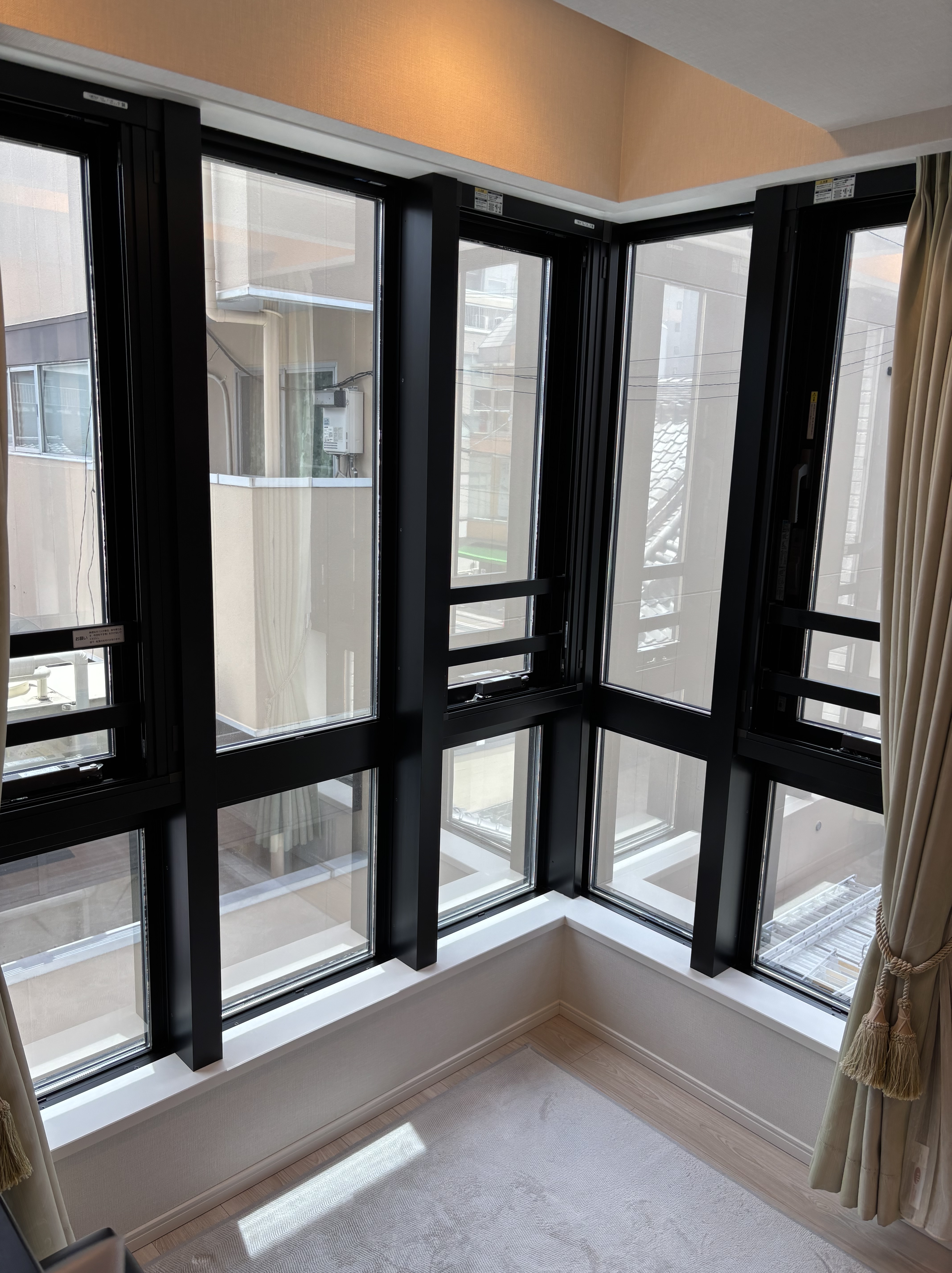 ご新居窓にミラーフィルムを貼って欲しいとのご依頼でした。お家の前の通りは観光客が多く、カーテンをすると暗くなるのでフィルムで解決したいとのことでした。施工後は、外に出て確認され、しっかりミラー化されていることに喜んでいただきました。