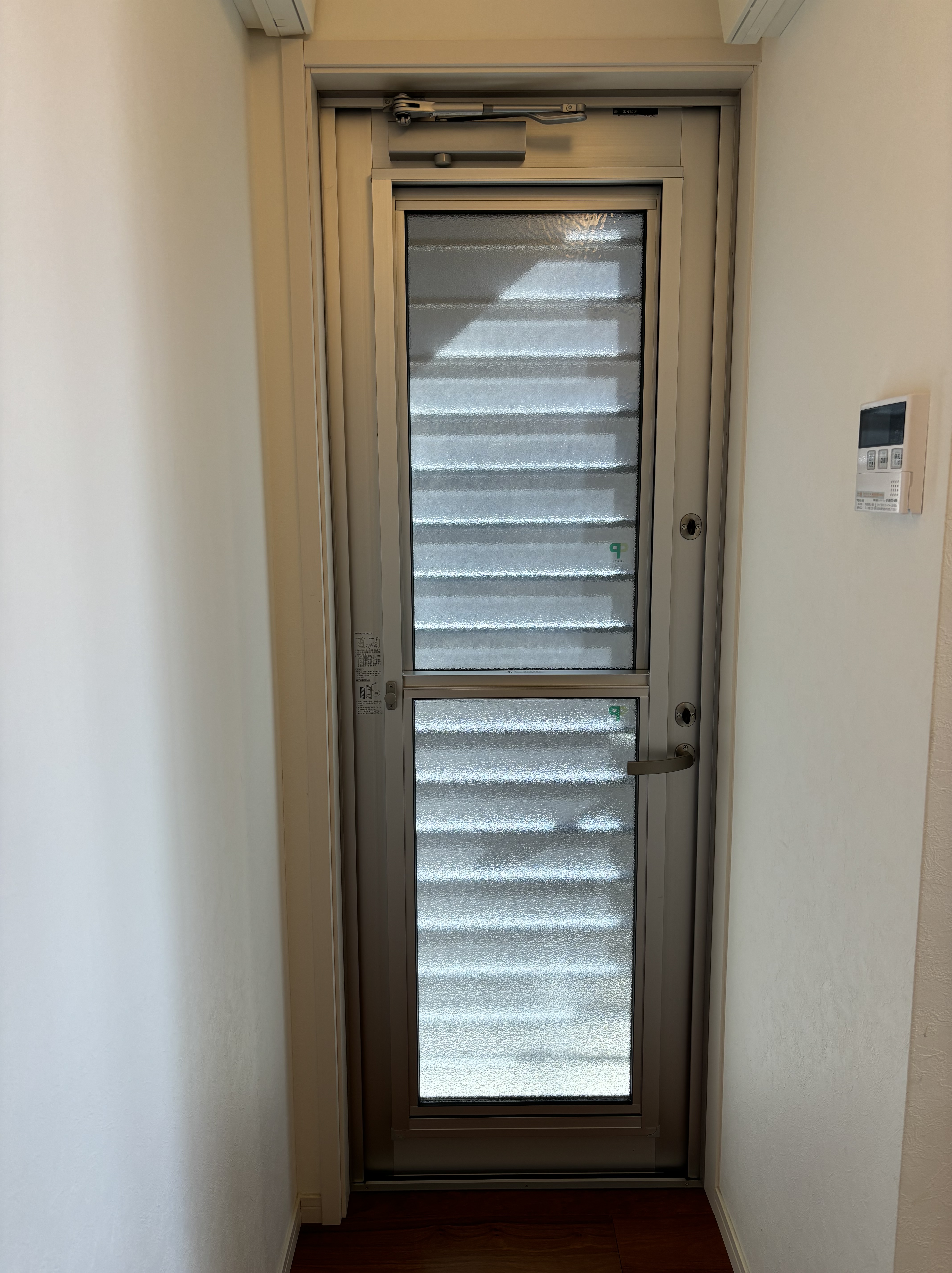 お近くで空き巣が6件入られており、死角となっている勝手口等に防犯フィルムを貼って欲しいとのご依頼でした。