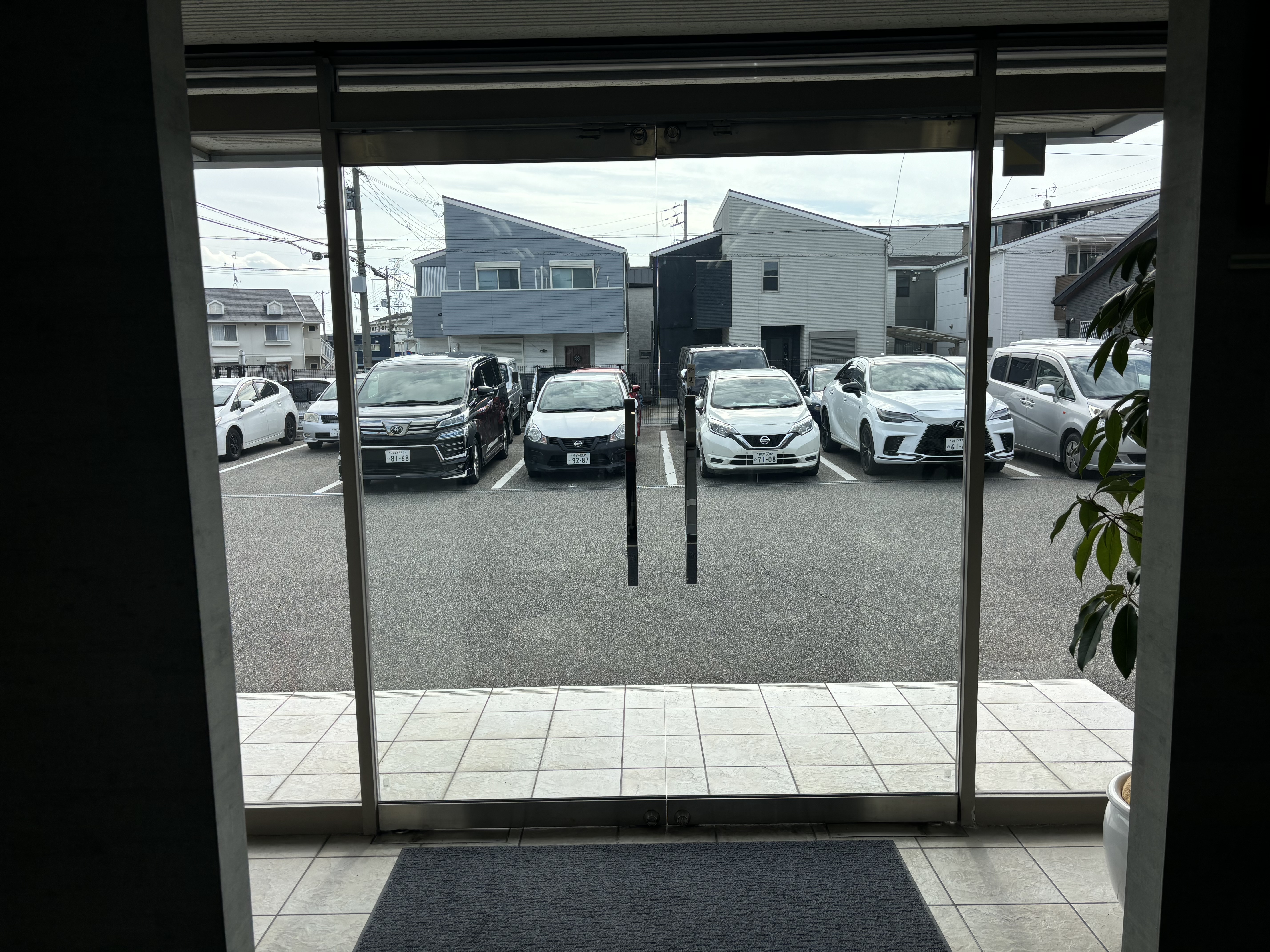 玄関ドアガラスから入る強烈な西日をどうにかしたいとのご相談をいただきました。施工前は、玄関ドア入った先にパーテンションを置いて対応されていたとのことでしたが、それでも眩しく、遮光フィルムを貼らせていただきました。