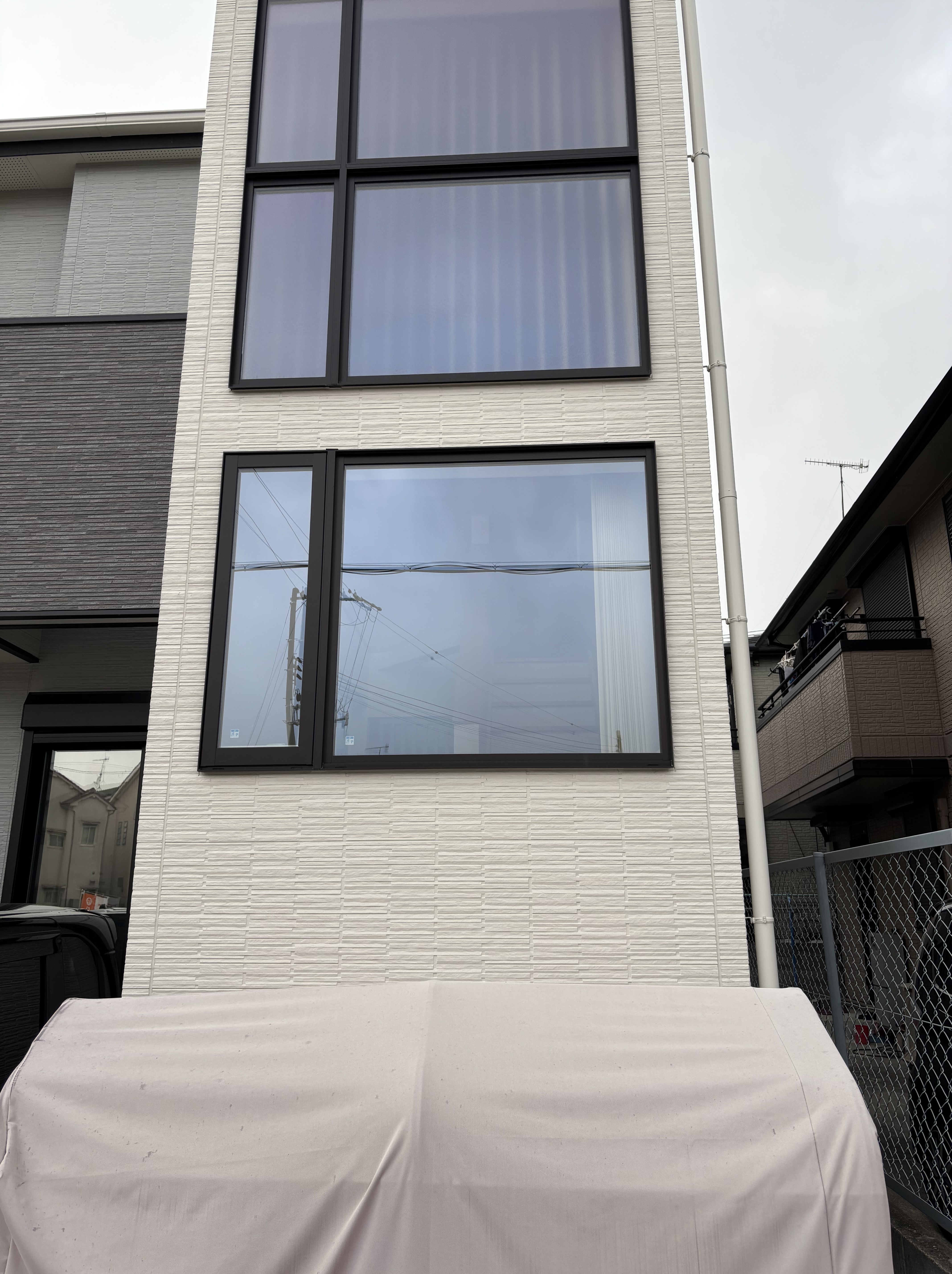 ミラーフィルムを貼ってほしいとのご依頼でした。ご依頼窓の横の窓ガラスは防犯フィルムが貼られていたので、その施工業者様になぜご依頼されないのかをお聞きしたところ、連絡をされたみたいですが連絡がつかなかったみたいで当店へのご依頼でした。