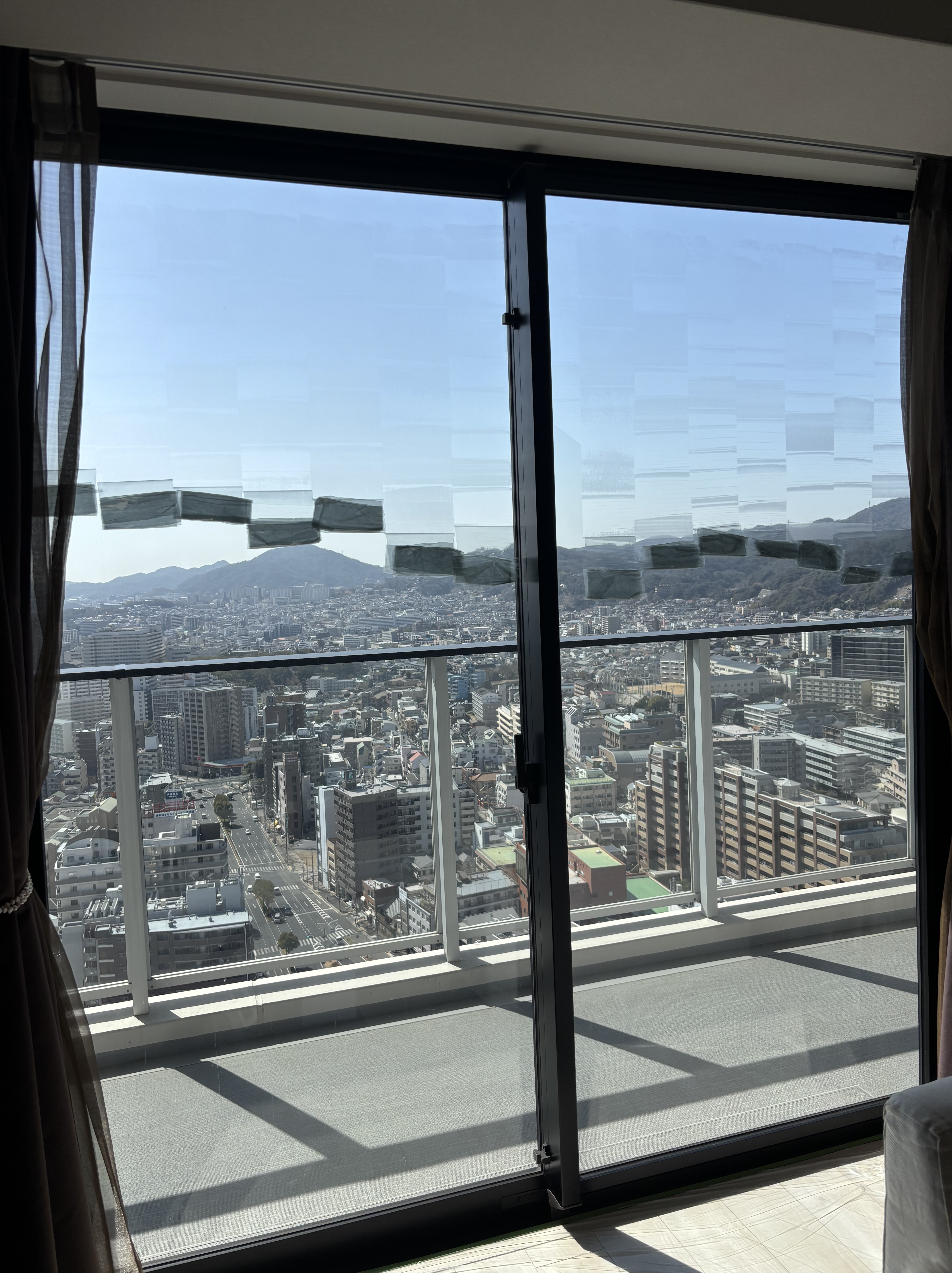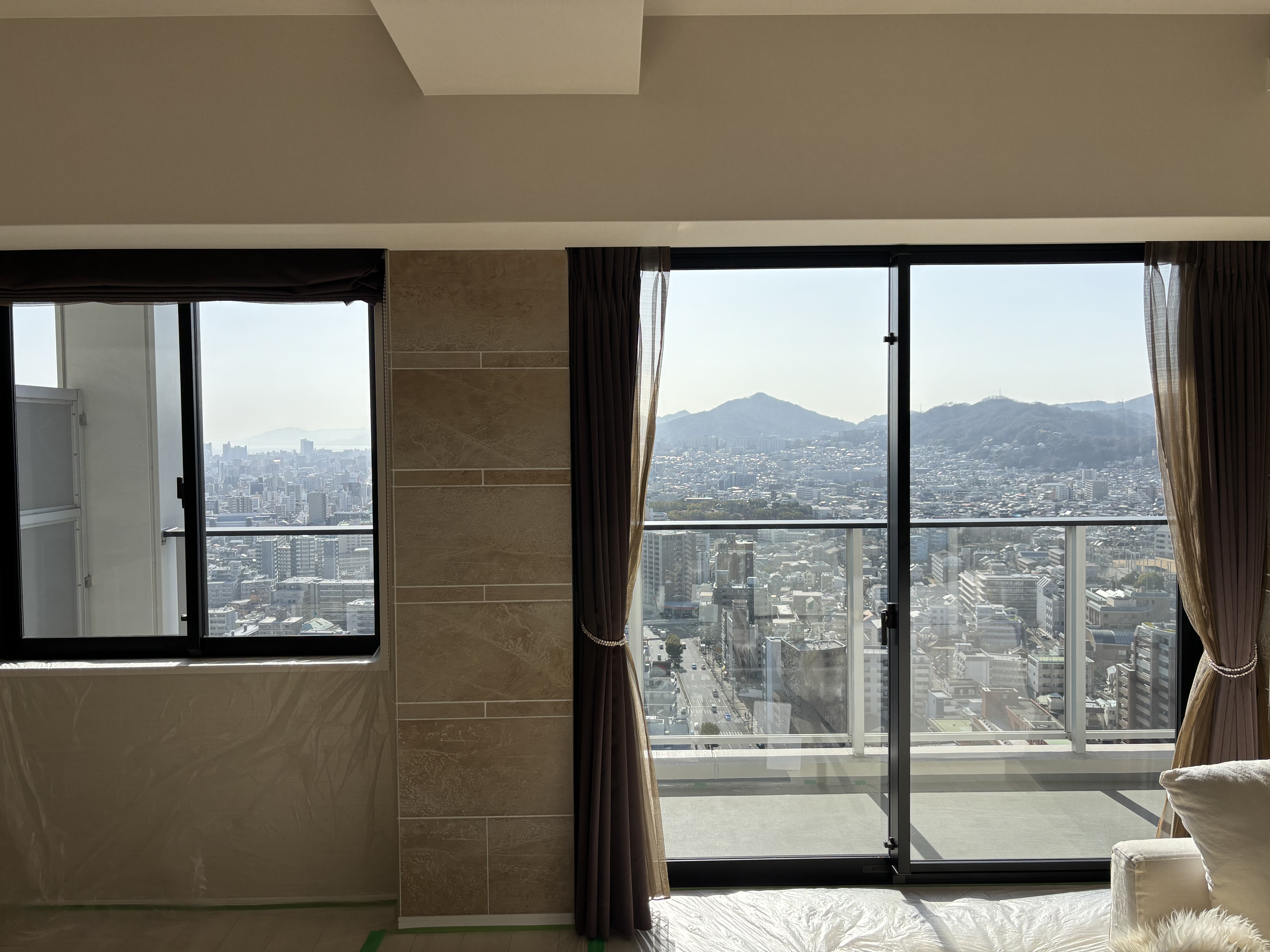 既設フィルムが白く濁ってきた為、貼り替えのご依頼をいただきました。フィルムと糊を綺麗に剥がした後、透明遮熱フィルムを施工させていただきました。