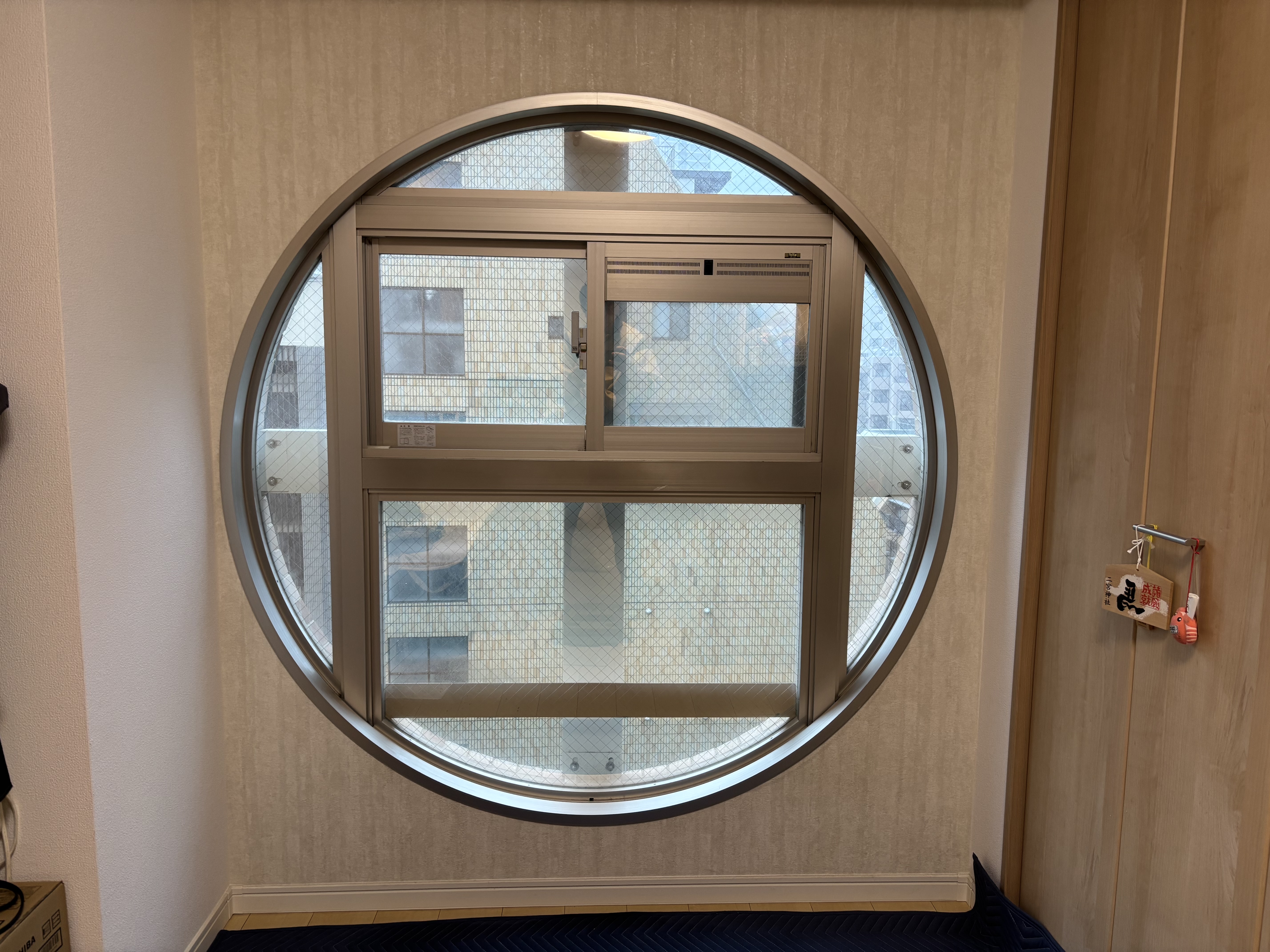 リピートのお客様です。以前貼った窓ガラスとは別の窓に遮断熱フィルムを貼って欲しいとのご相談をいただき施工させていただきました。窓ガラスの形状が特殊でしたので、セパレータにて型取りしてプレカットしてガラス貼付いたしました。窓ガラスは四角のものがほとんどですが、丸型や平行四辺形、台形等、様々な形状のものがあり、工夫しながら施工いたします。