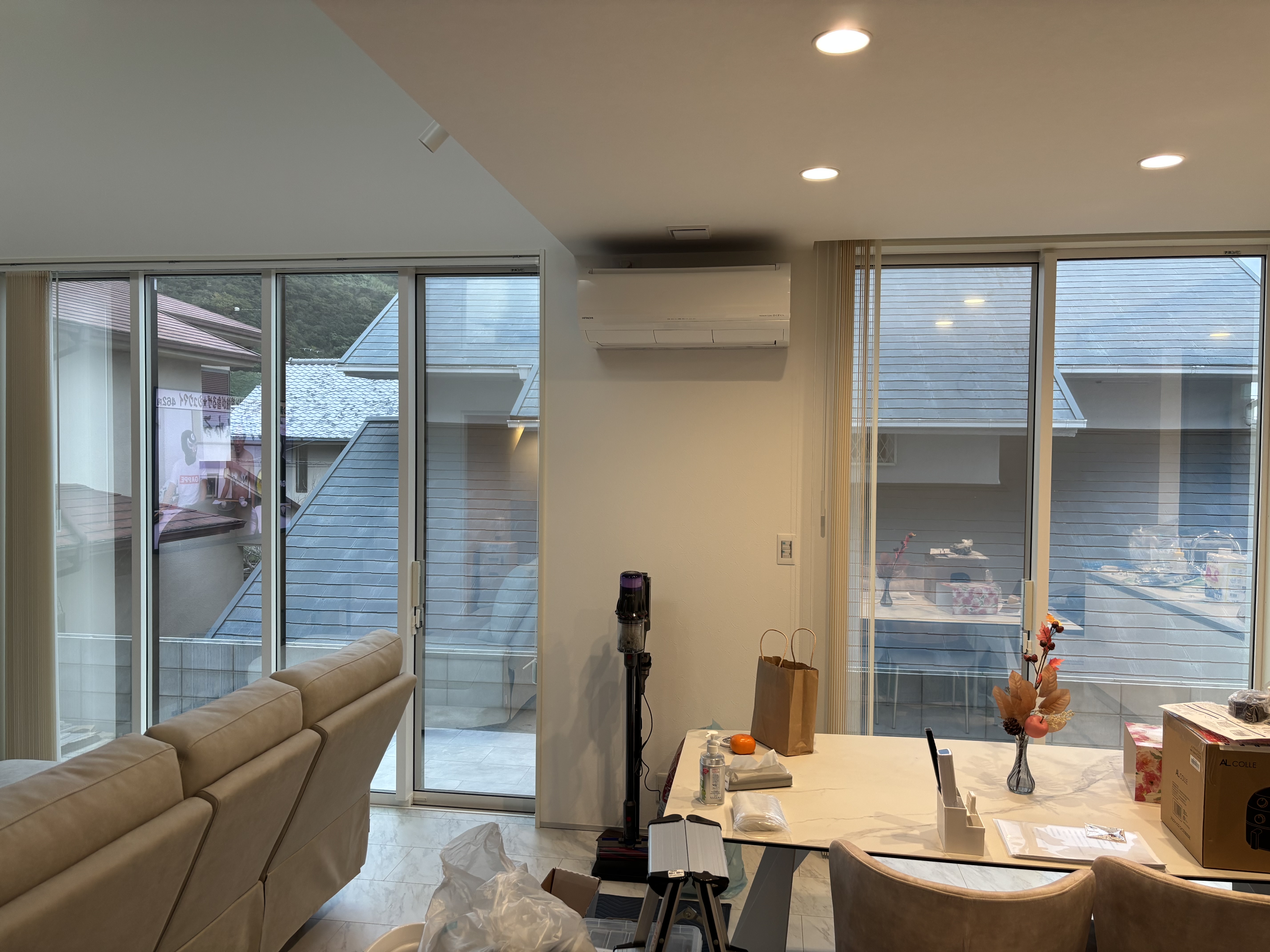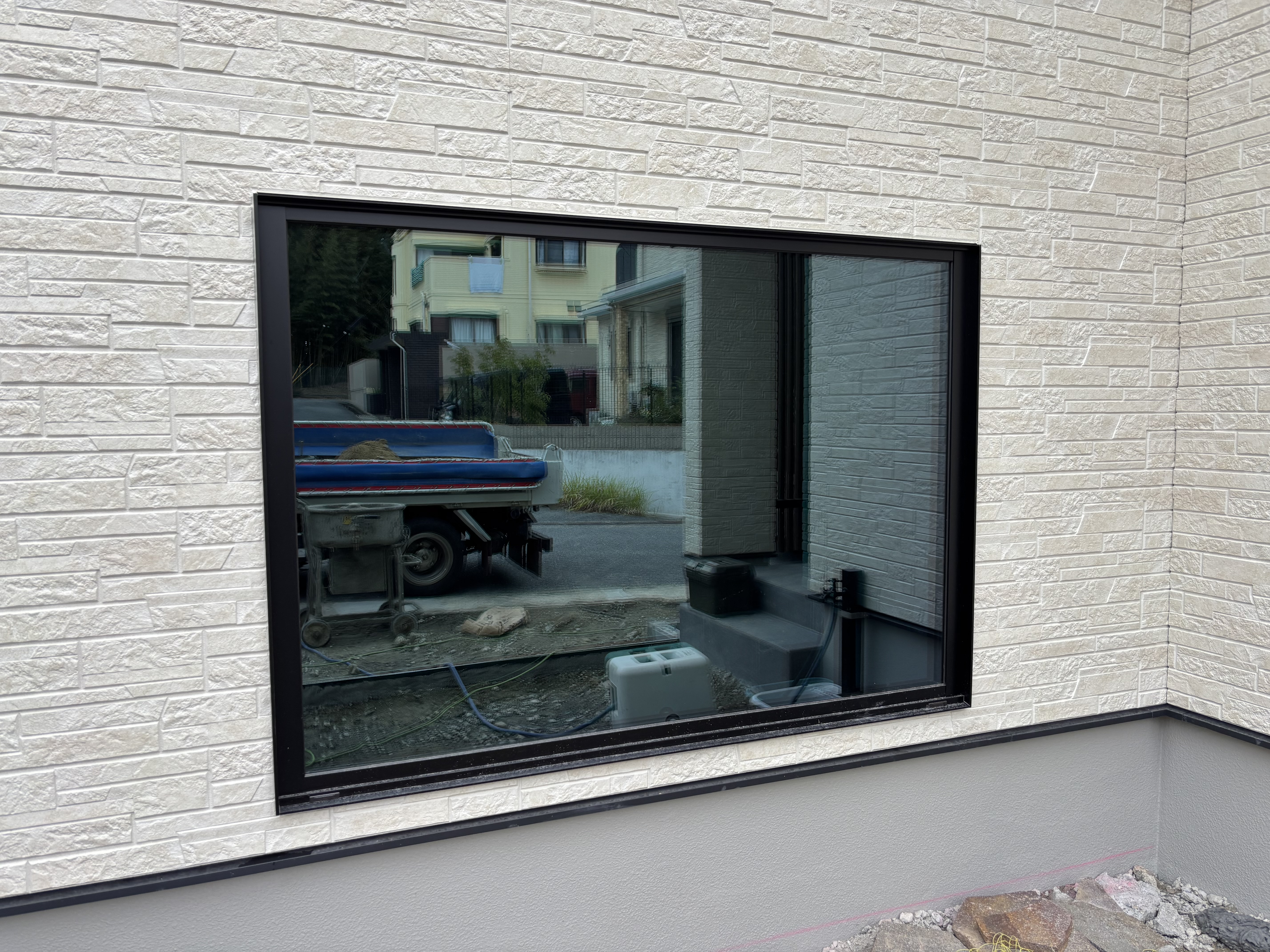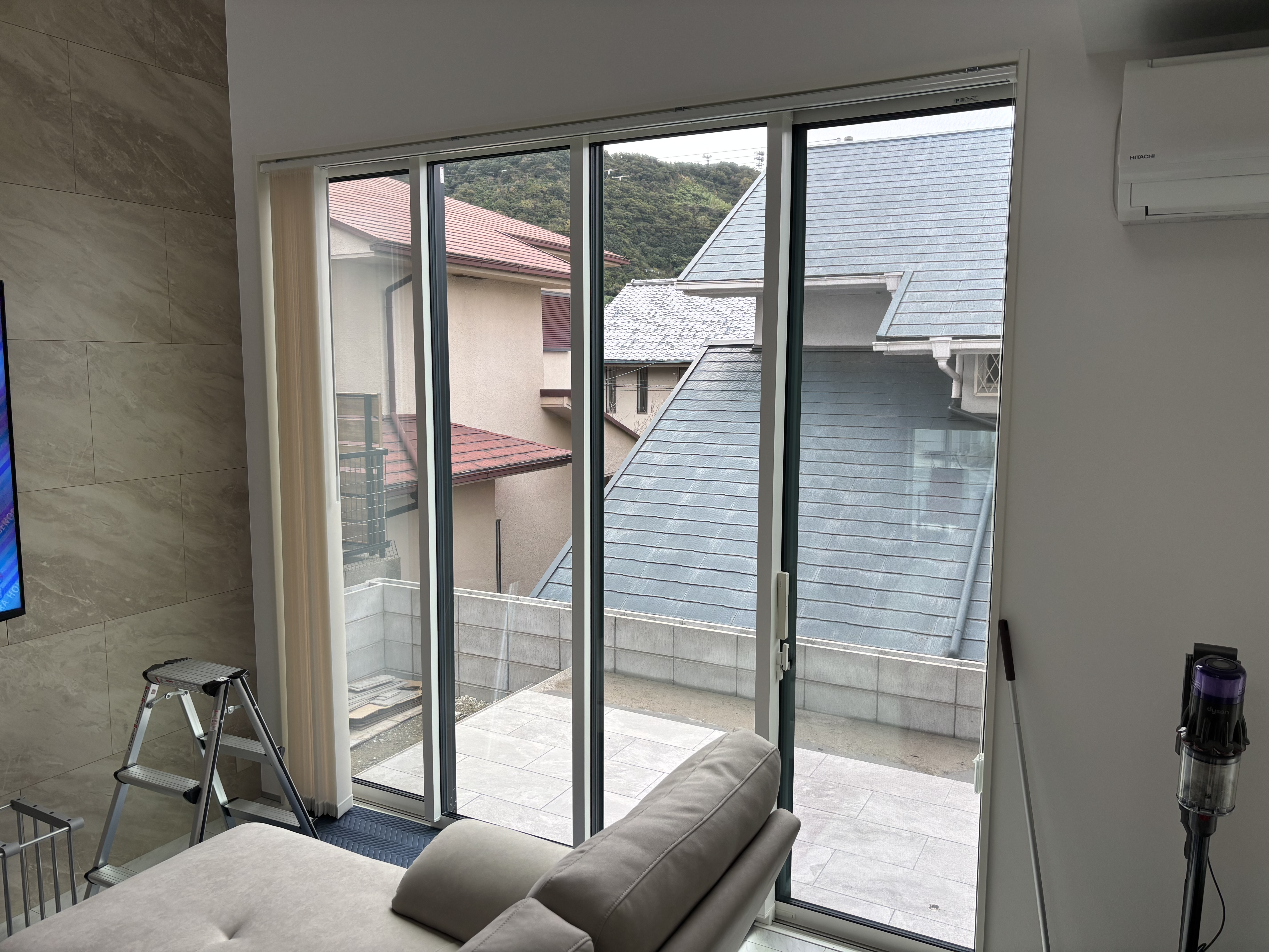ご新居リビング窓にミラーフィルム、ワンちゃんのお部屋ガラスにスモークフィルムを貼らせていただきました。