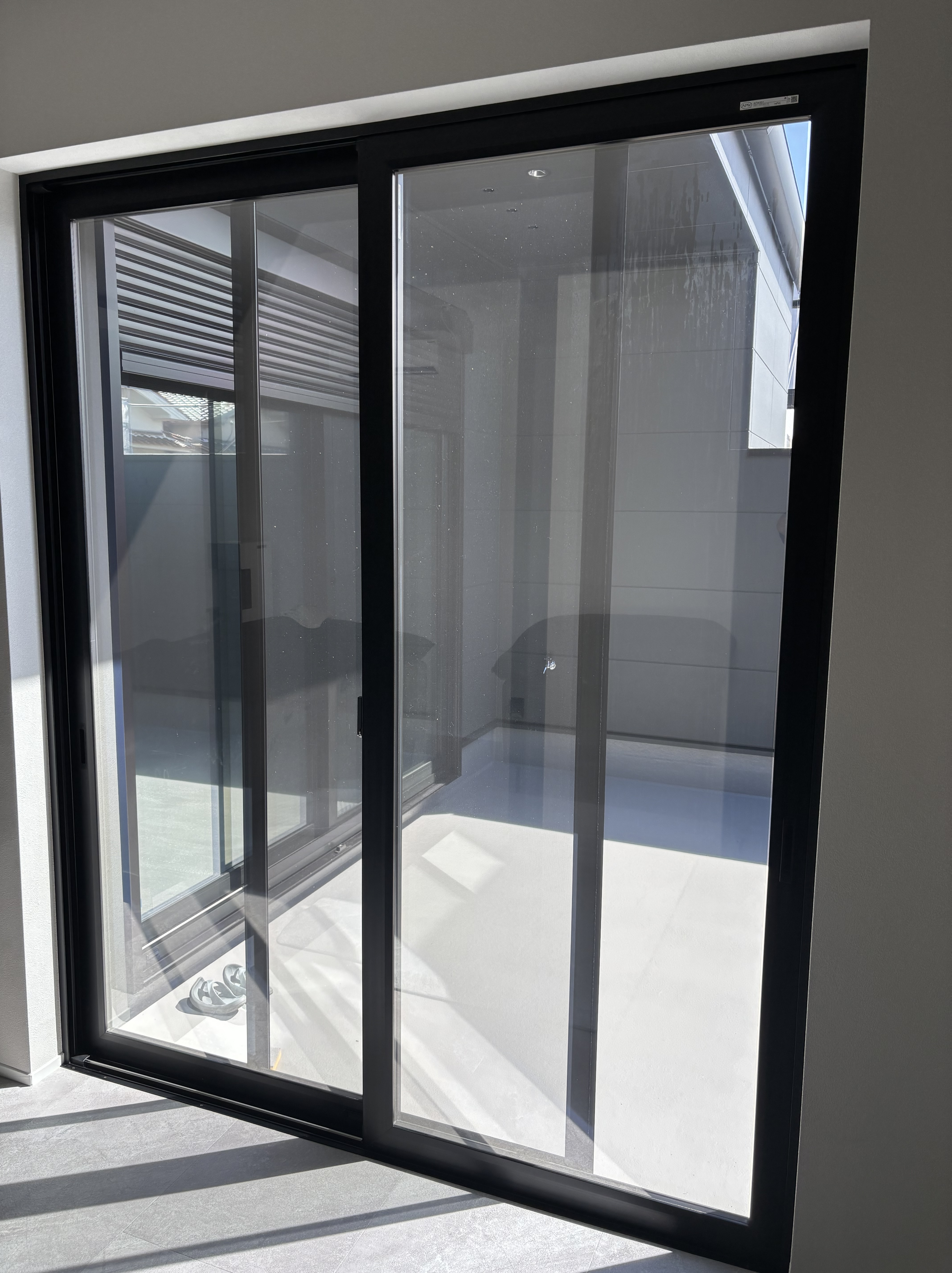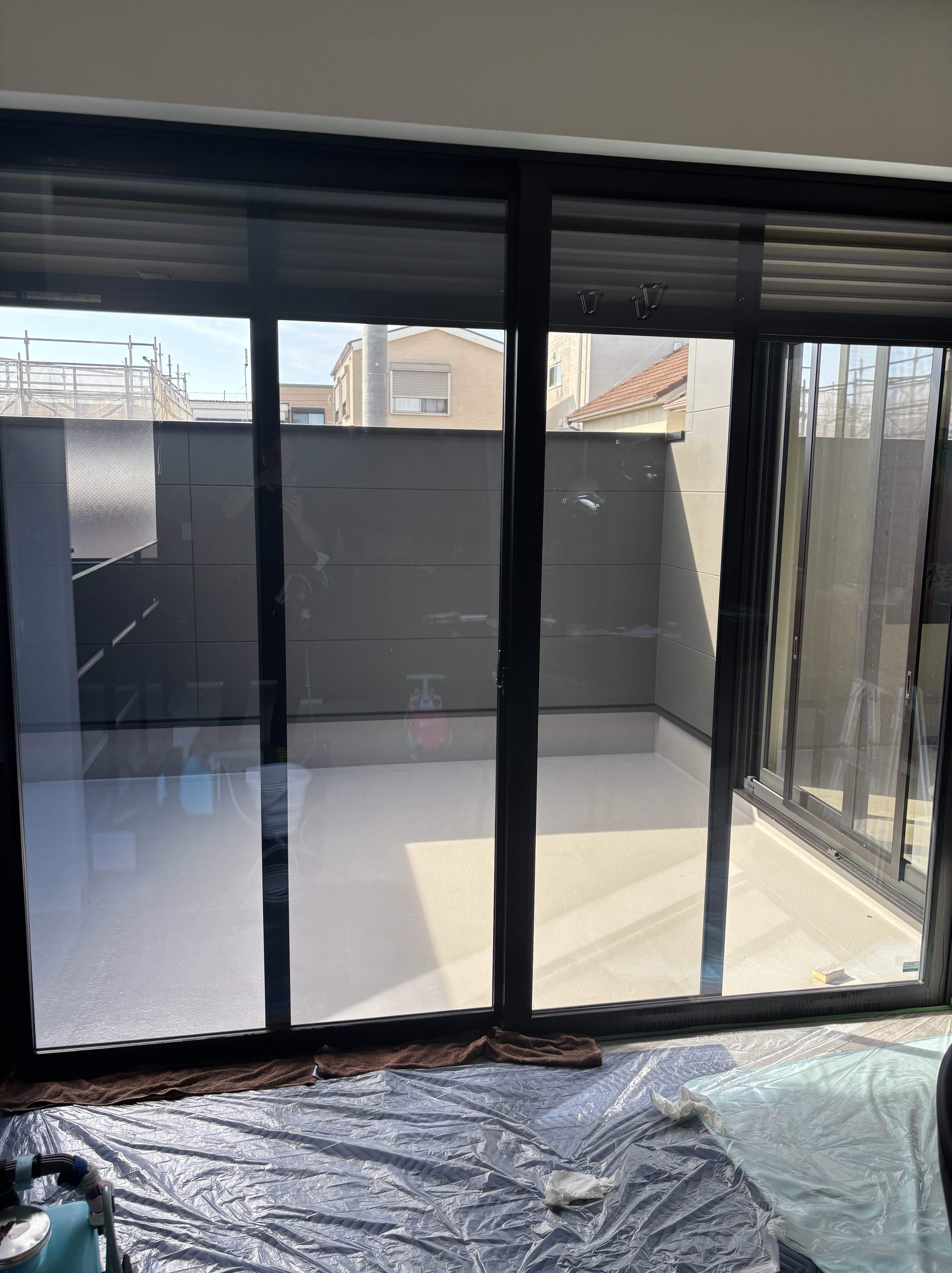 ご新居の大きな窓にミラーフィルムを貼ってほしいとのご依頼でした。外からの視線をシャットアウトしたいとのことです。また、暑さ対策もできるので一石二鳥となりました。