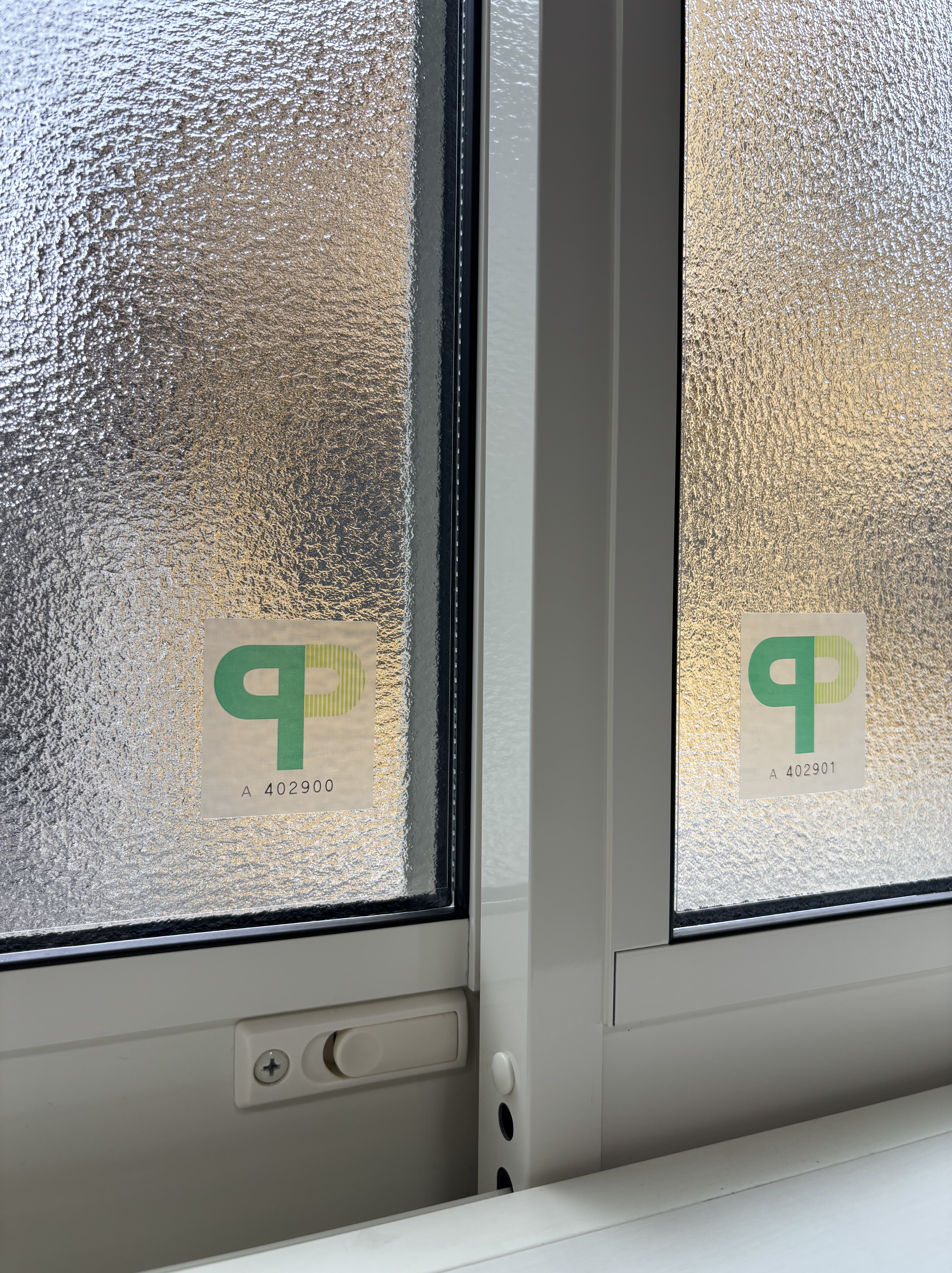 同エリアでも闇バイトなのか空き巣被害が立て続けに出ているらしく、防犯対策をしたいとのご依頼でした。CPマーク付防犯フィルムを貼らせていただきました。