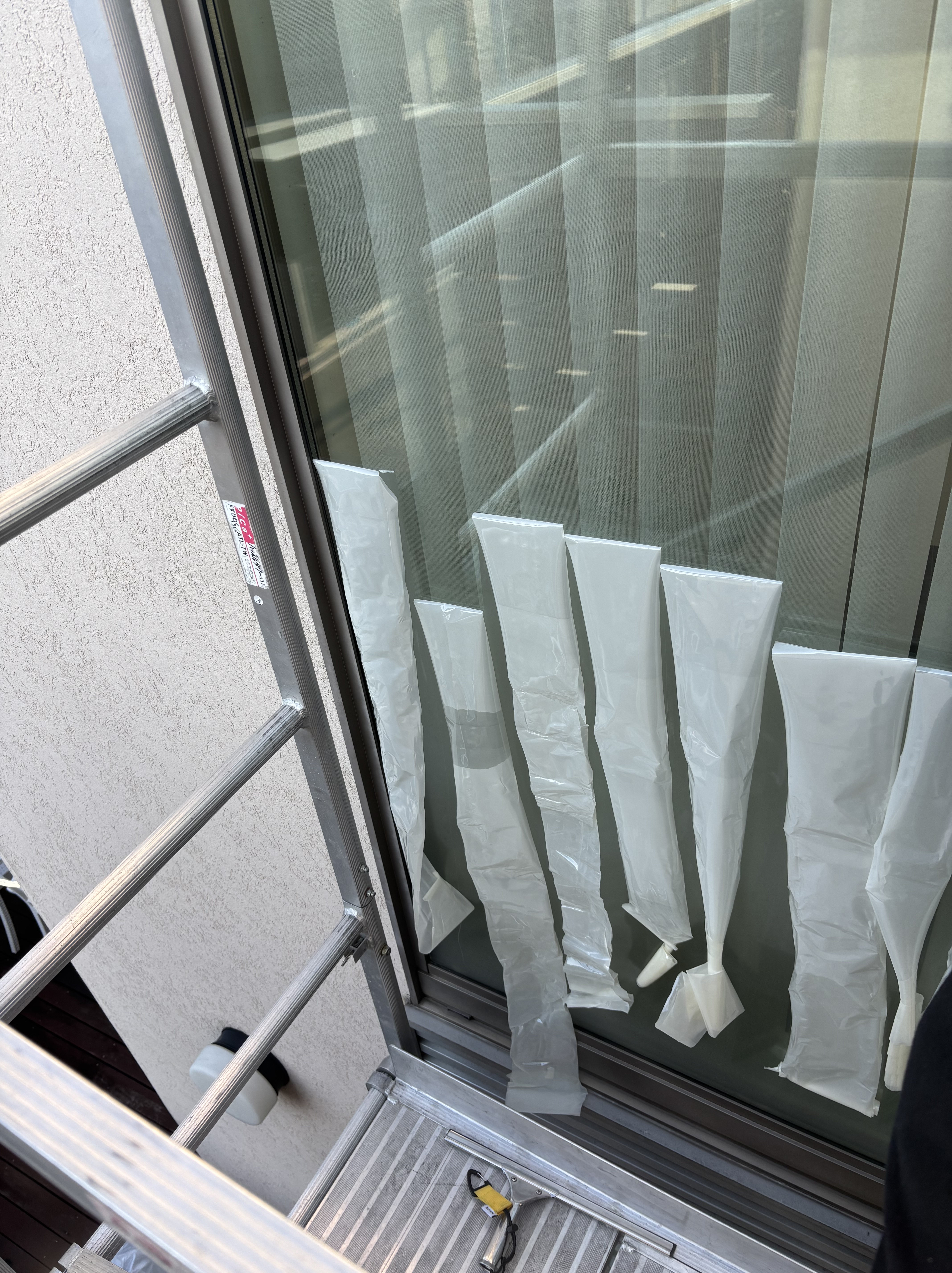 20年前に貼られていたフィルムが劣化で白く濁ってきた為、貼り替えをさせていただきました。既設フィルムが防犯フィルムで、吹き抜け大窓箇所もあったので、1日3名の終日作業となりましたが、無事完了。また、追加で外貼りフィルムの剥離もさせていただきました。