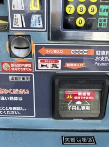 先日コインパーキングにて、駐車代780円のお支払いをしようと、千円札を入れるとすぐに返却され、よく見ると「新紙幣使用できません」と書いてある。大阪市北区という都会でも、まだ新紙幣対応していない駐車場があるんだなくらいを思いながら、お支払機の真横に隣接している100円自販機で缶コーヒーを買って小銭を作る。そして、その小銭で精算を行おうとすると、次は500円玉が返却される。よく見ると「新500円硬貨使用できません」と書いてある。しょうがなく、新500円玉で二本目の缶コーヒーを買い、更に小銭を作って駐車代の精算を済ませた。